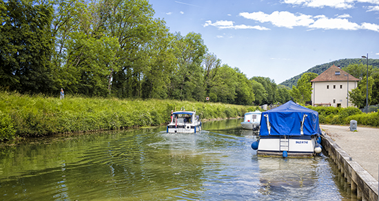 In Baume-les-Dames lädt der Stellplatz am Bootshafen zum Verweilen ein. Wir schauen den Hausbooten zu, den über den Doubs schippern und Radlern, die diese schöne Landschaft ebenfalls naturnah genießen.
